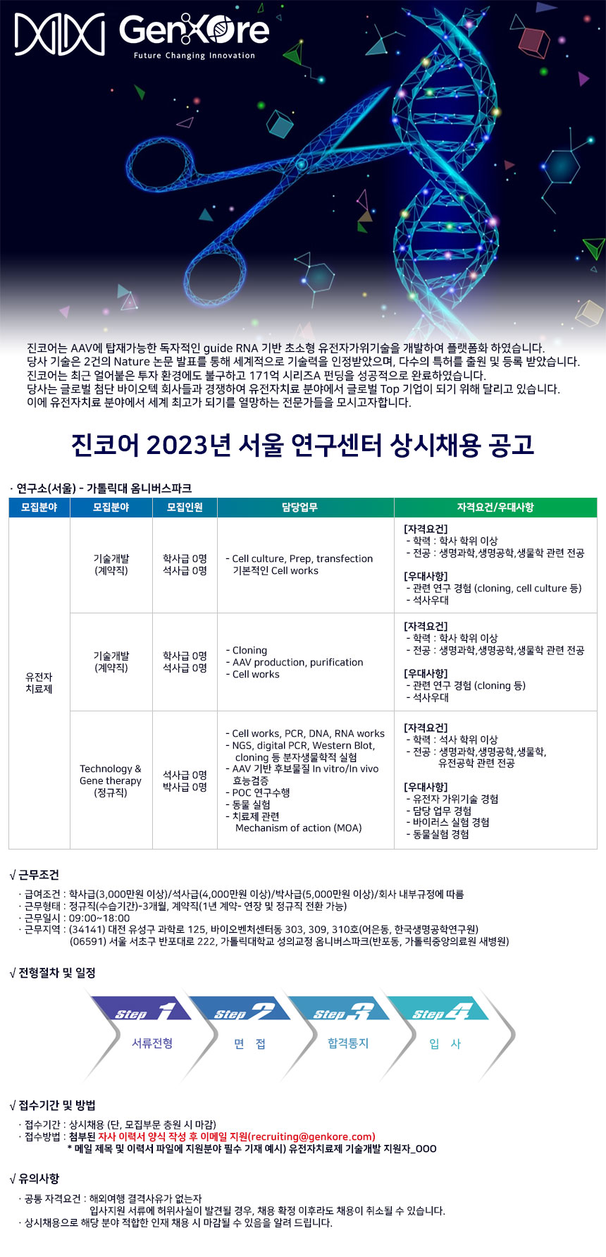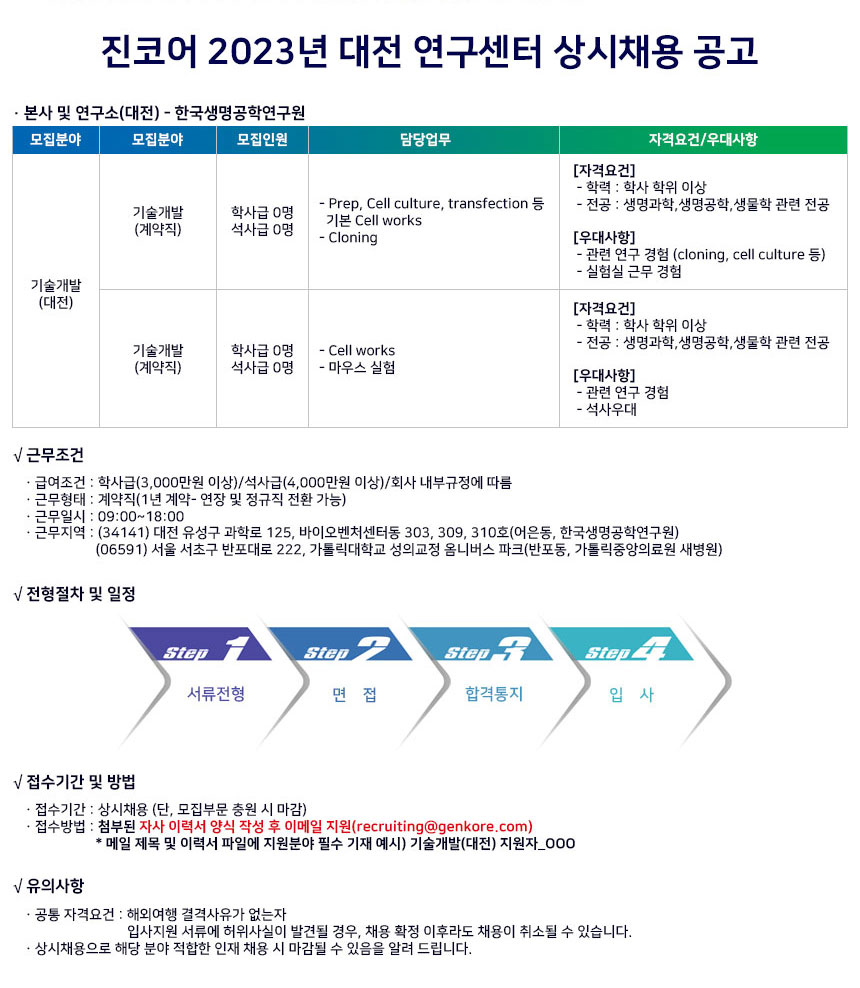 2023년 진코어 연구센터(서울, 대전) 상시 채용 공고